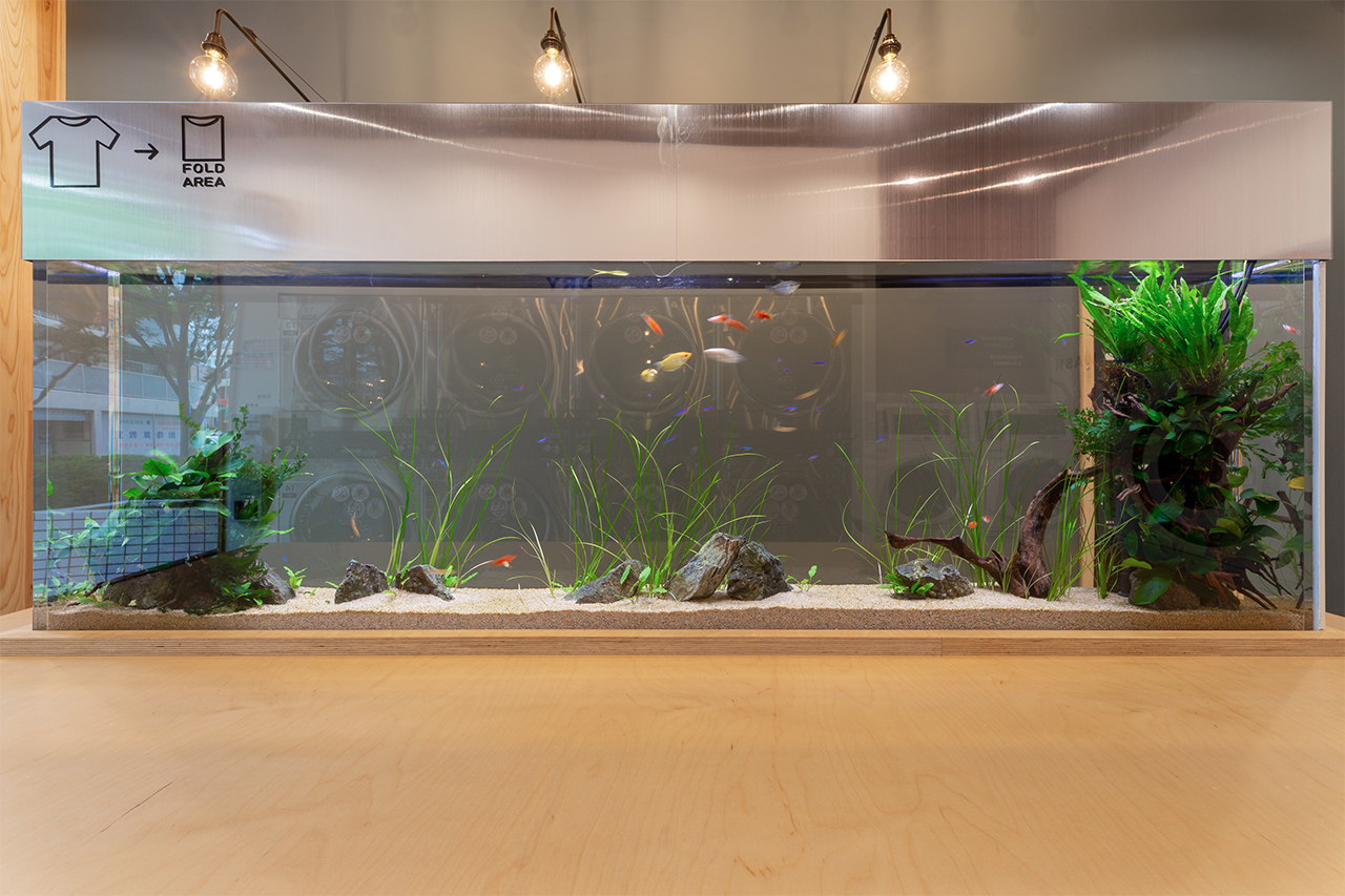 熱帯地方の淡水水景をイメージした全長1.8mの水槽を設置。優雅に泳ぎ回る色鮮やかな魚たちが、幻想的な空間を演出しています。