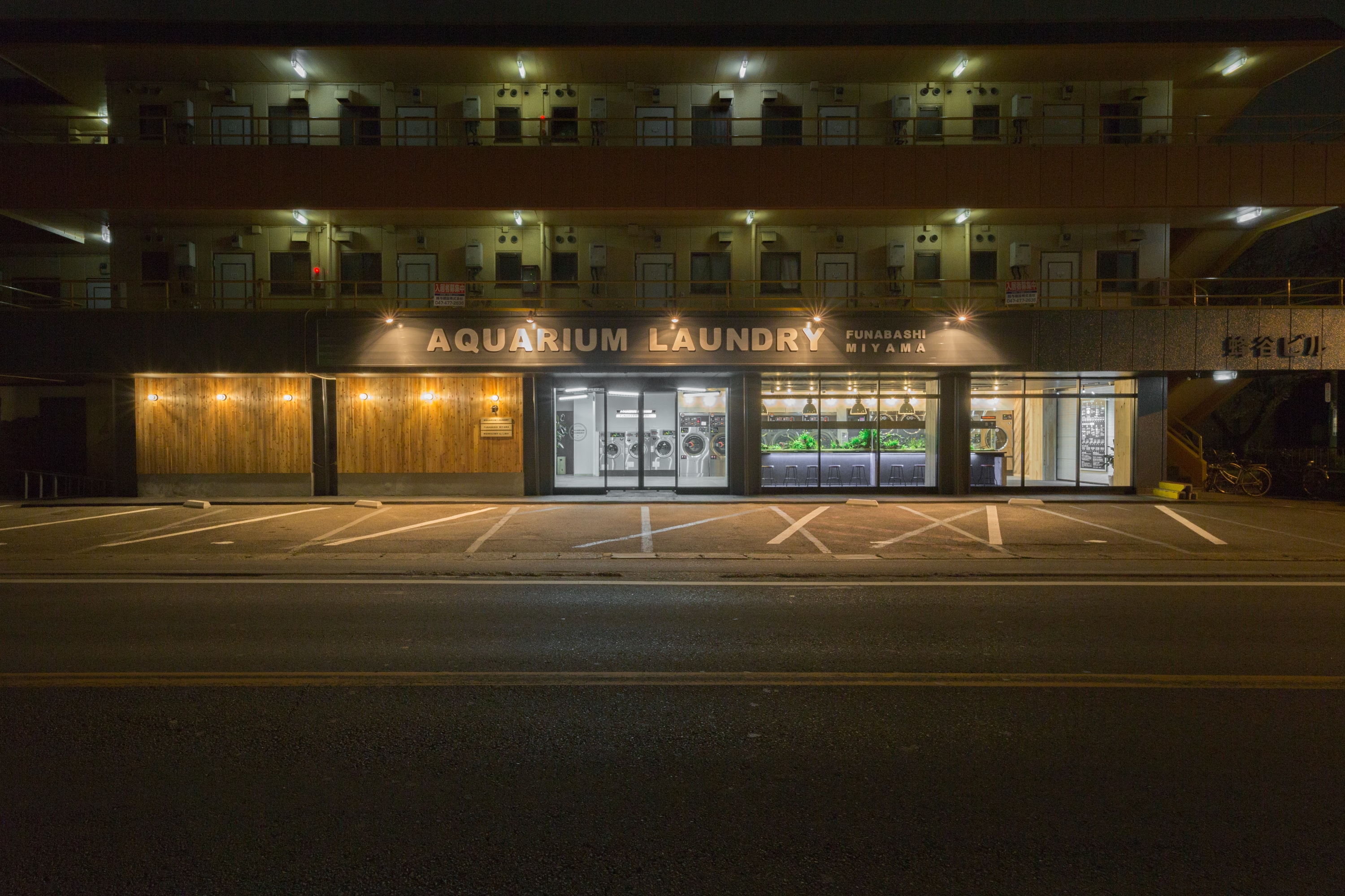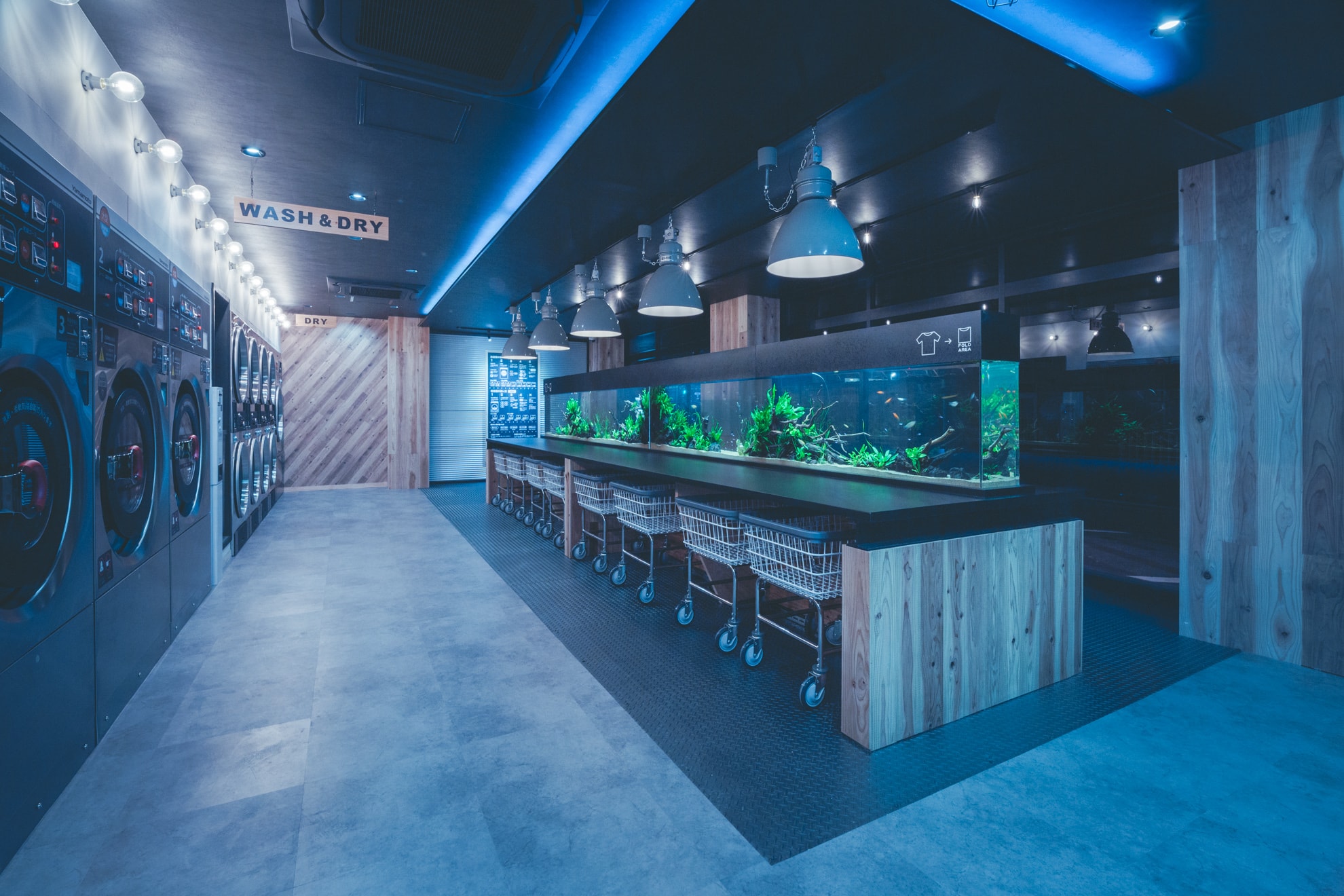 国道に向かって全面ガラス張りの店内には、これまでのAQUARIUM LAUNDRYの大型水槽の中でも最大となる全長6mの超巨大水槽を設置しました。